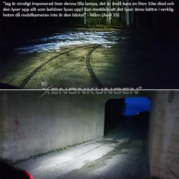 Backlampa med 10W Cree diodlampa som tack vare ljusförstärkande reflektorlins enkelt spöar alla så kallade 'backlampor' av 'värsta modellen' på marknaden.