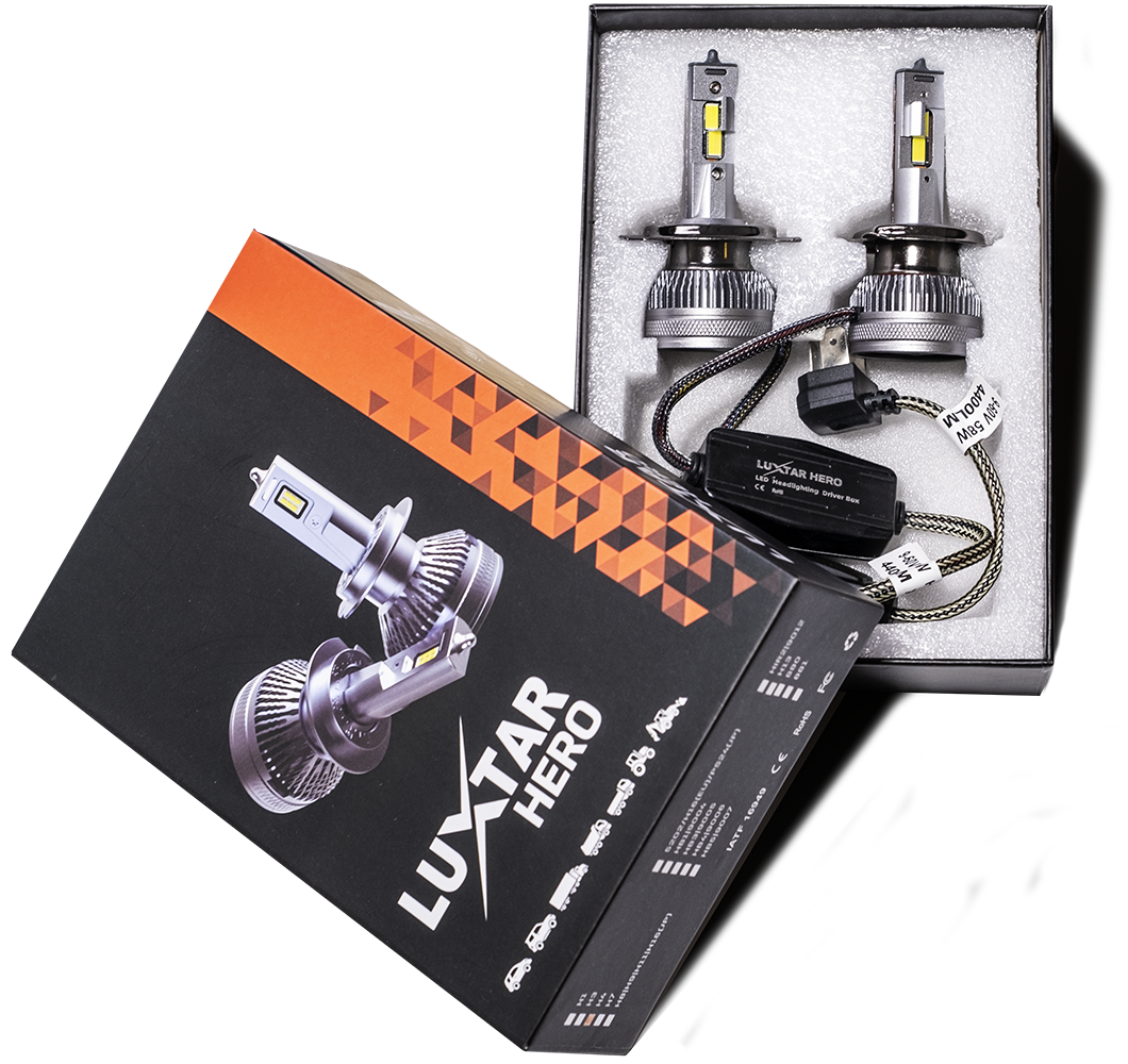 Luxtar introducerar stolt HERO H4, den senaste innovationen inom LED-belysning. Denna lampa är resultatet av den senaste LED-tekniken kombinerat med feedback från professionella användare och installatörer. Den erbjuder en imponerande ljusstyrka på 4400 Lumen, vilket är ungefär fyra gånger starkare än den halogenlampa den är avsedd att ersätta. Detta säkerställer optimal sikt för både föraren och medtrafikanter.