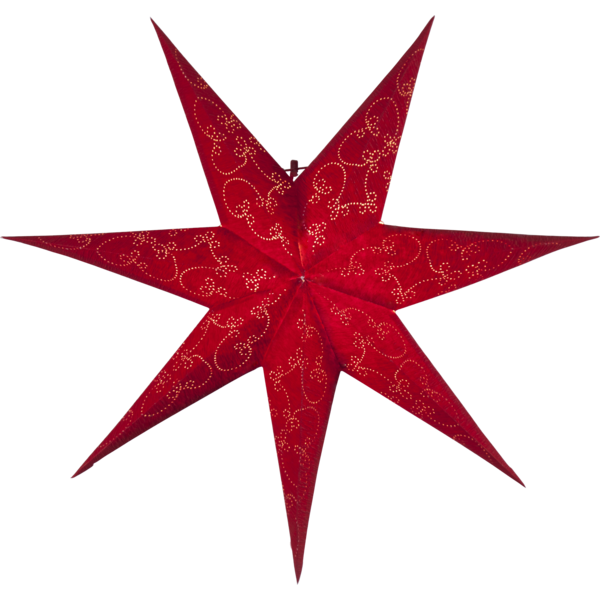 Röd pappersstjärna med hålmönster och struktur. Stämningsfull stjärna att hänga upp i fönstret för att skapa julkänsla. Papper av återvunnen bomull.