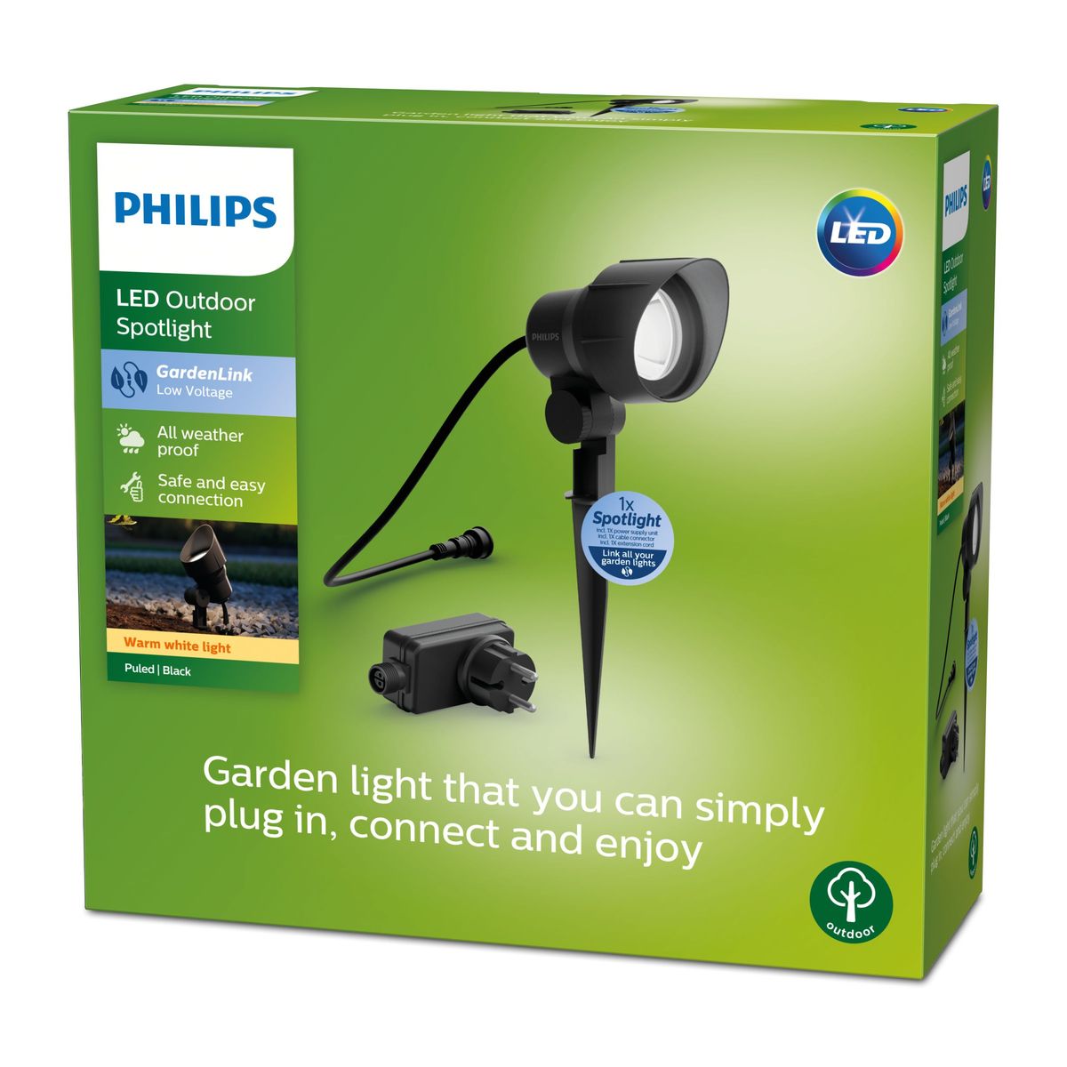 Philips GardenLink lågspänningsfamilj erbjuder en rad utomhusarmaturer som du enkelt och säkert kan installera själv. Du kan ansluta flera lampor till en enda strömkälla och ansluta den till ett standarduttag och sedan enkelt lägga till ytterligare lampor eller flytta dem när du vill. Kabeldragningen är enkel och tack vare lågspänningen finns ingen risk för skada för dig, dina barn eller dina sällskapsdjur.